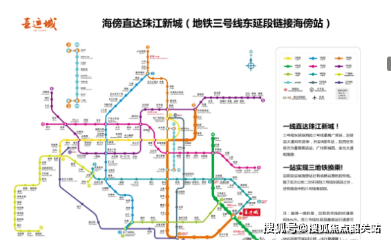 从海傍站乘坐4号线,6站可直达琶洲CBD,7站抵达天河核心区域;乘坐3号线东延段(已通车),从海傍站始发,可直达珠江新城,4站抵达番禺广场TOD,5站至南村万博CBD,无缝衔接番禺两大商务区及天河、荔湾等核心城区,通勤效率大幅提升。