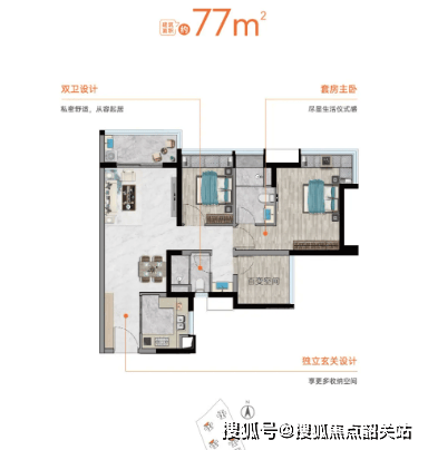 项目主推刚需型户型,以 “超 90% 实用率 + 紧凑布局 + 精装交付” 为核心,覆盖三房两卫等主力户型,适配年轻刚需、新婚家庭及有孩家庭,空间利用率远超同区域竞品,部分 77㎡户型即配备两卫,性价比突出。