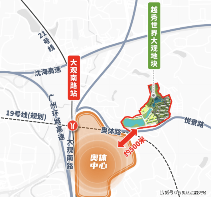 项目位于天河世界大观板块,悦景路是片区主要出行干道,目前正在拓宽至四车道,预计2025年完成通车。项目东接珠吉路、西连奥体路,可快速连接广园快速及大观南路主干道,实现全城便捷通达。未来,板块内新建道路将直接接驳奥体路与机场二高速,进一步提升交通效率。