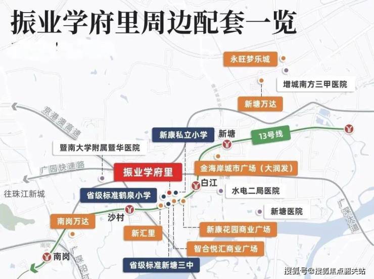 振业学府里临近13号线沙村站和白江站,步行距离约为1.5公里,建议采用电动车接驳至地铁口,这样更为便捷。此外,一站即可到达东部枢纽新塘TOD,未来将汇集高铁、城际铁路及多条地铁线路,实现与广州市中心的无缝对接。特别是13号线二期工程完成后,居民可直达珠江新城,享受主城繁华。