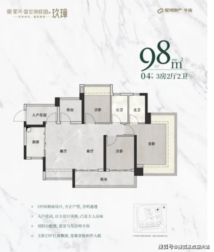 星河盛世锦城推出的三期产品,面积段从98㎡到128㎡不等,涵盖三房至四房加一多功能室的设计,充分考虑到了不同家庭结构的需求。每个户型都经过精心设计,注重采光通风,力求为住户创造一个温馨舒适的居住空间。特别是98㎡户型,主朝向朝南,主卧配备270°无柱飘窗,视野开阔;而128㎡户型则拥有独立入户花园,增加了归家的第一刻便感受到的温馨与舒适感。