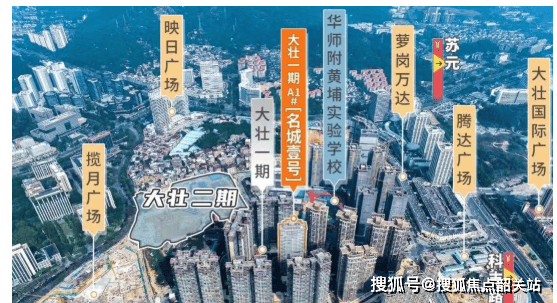 黄埔大壮名城位于科学城板块核心位置,二期占地约 4.6 万方,建筑面积约 16 万方,容积率 4.78,绿化率 36%。项目采用围合式大花园布局,南侧留出超 70 米开阔空间形成通风廊道,最大楼间距超 150 米,最小约 70 米 +,楼栋设计为蝶型单栋,四面 180° 眺望,减少对视问题。二期外立面升级为全玻璃幕墙、香槟金色塔冠等,配备约 2.5 万平中央大园林,保留 130 年古树,打造下沉式古榕庭院会所等,在科学城核心区营造出兼具品质与美学的居住空间,具有一定稀缺性。售楼处电话:4008285661