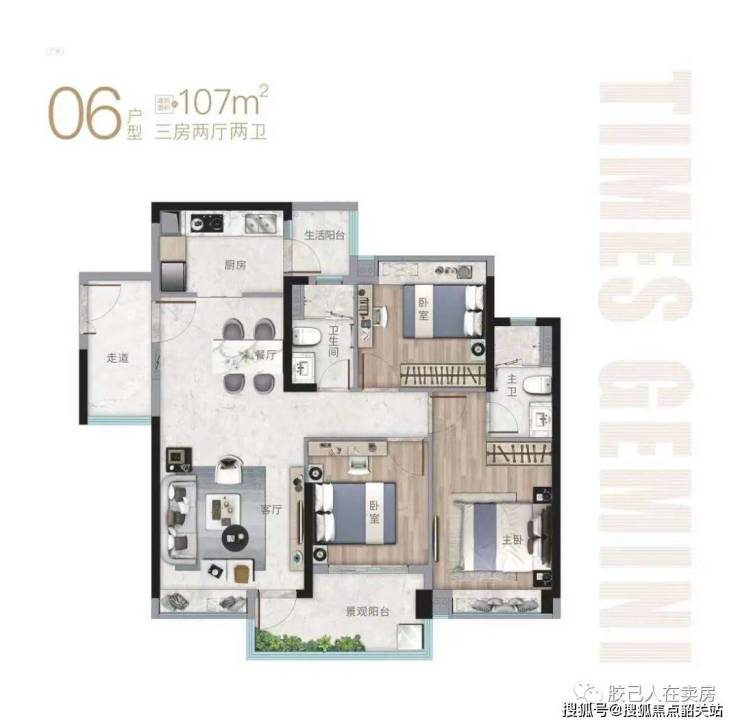 奢装星品三房:建面约99㎡至107㎡,宽敞明亮,设计灵动阔绰,是追求高品质生活的理想之选。
