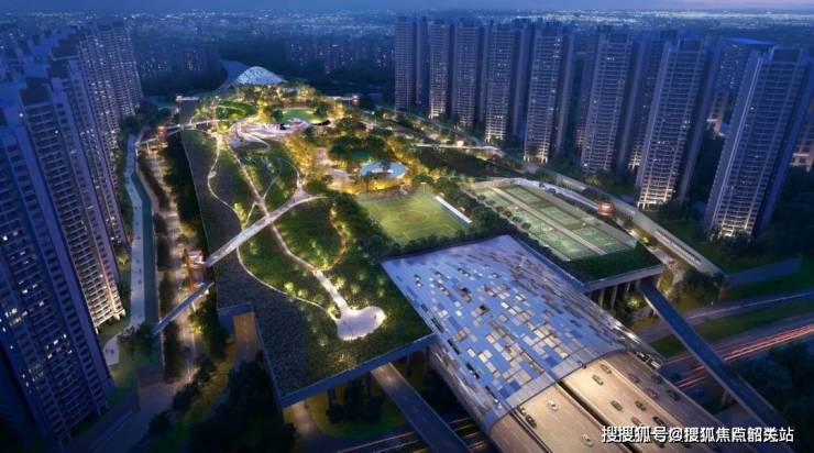 生态配置:约15万㎡空中绿岛,含中央文化交流区、儿童乐园、迷你高尔夫球场,绿化率30%,容积率3.0。