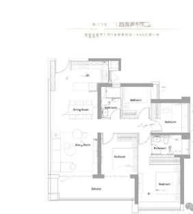 125㎡四房:带有6.8米的阳台,私梯入户设计,适合大家庭居住。
