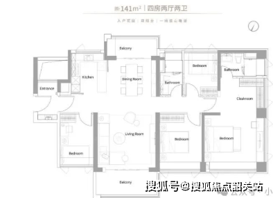 141㎡四房:主卧带独立卫生间和衣帽间,适合需要更多私人空间的家庭。