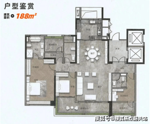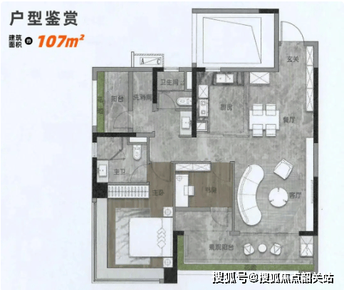 户型设计:建面约107-188㎡三至四房,全南向布局,得房率超85%;