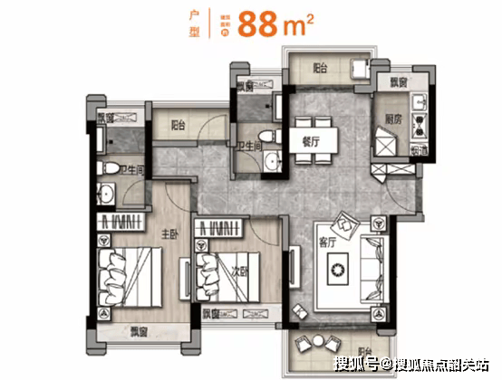 约83-105㎡高层三至四房,揽大园林、瞰生态公园、揽无边江景!