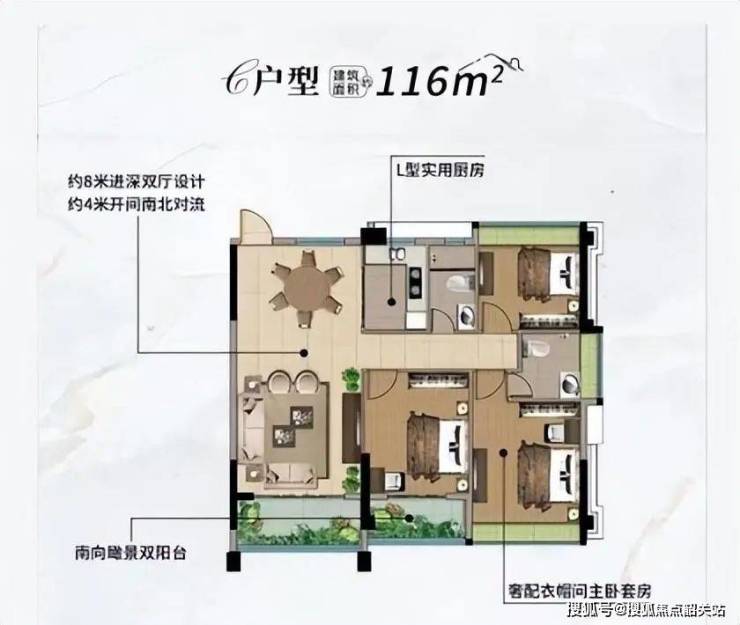 户型配置:主力户型面积段为100-156平方米,均为三房配置起的高端居住社区,提供奢阔舒适的居住空间。
