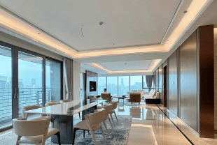 项目配备先进智能化设施,三梯两户的设计保证了私密性与舒适度,室内层高3.4米,满足豪宅生活空间需求。户型内部布局合理,动静分区清晰,三面采光设计使每一户都能拥有270°江景视野,充分利用自然光与景观资源。室外公共空间及园林景观亦按照滨江豪宅标准打造,提供滨江慢步道、绿化景观带及多功能休闲区,实现居住舒适性与高端品质的统一。