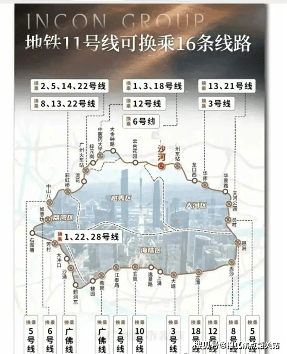 英广瑧尚地处天河区先烈东横路38号,位于越秀与天河接壤的黄金地带,属于天河沙河板块核心区域,一边拥抱天河CBD的商业繁华,一边承载广州百年文化艺术底蕴,地理位置得天独厚,是天河核心板块中兼具稀缺性与成长性的优质地块。项目周边交通网络四通八达,实现地铁、公交、自驾三维立体出行,满足不同人群的出行需求,具体交通状况如下:地铁方面,三地铁交织(5号线、6号线、11号线),距离6号线沙河顶站B出口约500米,步行仅需6-8分钟即可抵达;1站至沙河站,可换乘广州大环线11号线,该线路作为广州首条大环线,串联起天河、越秀、海珠、荔湾等核心区域,内环首班车06:14、末班车22:56,外环首班车06:10、末班车22:56,每8分钟一班,极大提升通勤效率;2站至区庄站,可换乘东西大动脉5号线,3站直达淘金商圈,6站可达北京路、珠江新城,一线直达琶洲CBD,通勤便捷度拉满。公交方面,项目周边500米内设有3个公交站点,分别是先烈东横路站、沙河顶站、水荫路站,途经线路包括11路、27路、65路、84路等10余条公交线路,可直达天河公园、环市东商圈、白云新城等区域,适合日常短途出行。自驾方面,项目紧邻广州大道,驱车3-5分钟即可抵达天河商圈、珠江新城CBD、环市东商圈,15分钟内可抵达白云机场高速、华南快速干线,轻松通达广州各区域,同时项目配备充足停车位,车位配比1:1.5,完全满足业主日常停车需求,避免停车困扰。