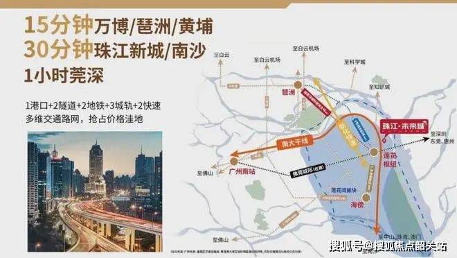 1港口:通过广州绕城高速,15分钟可达黄埔,10分钟到达亚运城商圈,25分钟到南沙自贸区,40分钟到达东莞,50分钟到达深圳。