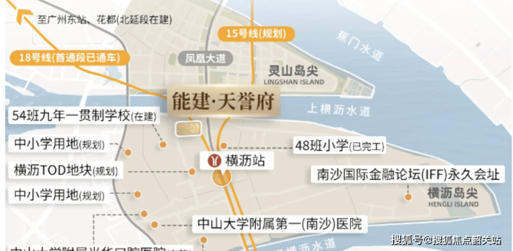 项目距离江岸线直线距离不足150米,临近珠江江面,拥有约300米宽的纯净江景视野,环境优美无工业污染。交通方面,天誉府距离地铁横沥站约400米,地铁18号线已通车,15号线处于申报阶段,32号线为中长期规划,未来多线地铁交汇将极大提升通勤便利性。周边还有广澳高速和南沙港快速路,能够快速连接广州主城区及周边东莞、佛山、中山等城市。交通网络成熟便捷,满足居民日常及长途出行需求。地理位置优越,结合多轨道交通,未来潜力巨大。