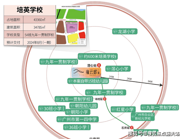 招商电建雍云邸位于广州市白云区的白云湖数字科技城板块,总建筑面积约为20万平方米,占地面积约5.2万平方米,规划有11栋住宅楼,共计1500户。该项目由招商蛇口与电建南国联袂打造,绿化率高达35%,车位数为1648个,梯户比为两梯六户,物管费为每平方米每月3.1元。
