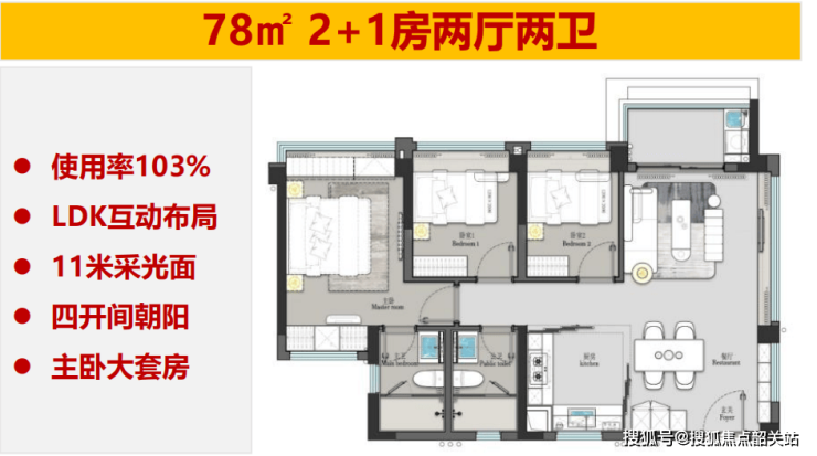 招商电建雍云邸目前在售户型使用率超100%,是白云湖区域内唯一新规后的户型。项目采用了蝶形设计,实现了南北通透的效果,并拥有良好的通风采光条件。具体户型亮点包括0.26的窗地比,高于市场平均水平。特别是78㎡和89㎡的户型设计,在保证了居住舒适度的同时,也实现了朝南的布局。