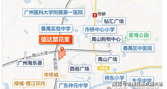 信达繁花里地理位置优越,位于禺山大道与西环路交汇处,距离地铁3号线市桥站约1.3公里,虽然步行需20分钟,但可通过共享单车或公交接驳来缩短通勤时间。自驾出行方面,通过华南快速干线、新光快速路以及东新高速公路可便捷抵达广州市区主要功能板块,如珠江新城CBD、琶洲国际会展中心商圈及番禺万博中央商务区等地。此外,区域内公共交通网络发达,形成覆盖中心城区主要区域的立体化交通体系。