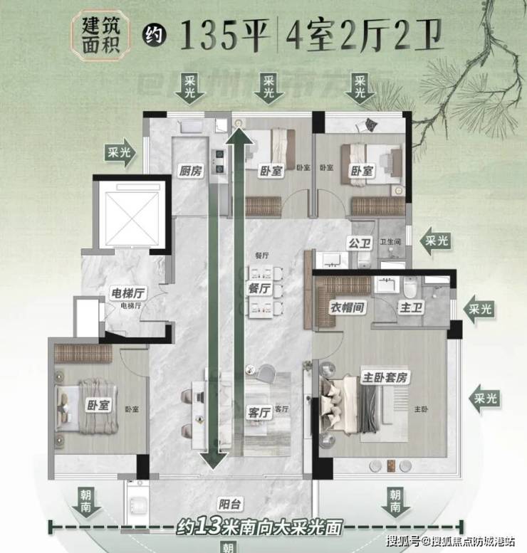 建面约89㎡三房做到“三开间朝南+主卧套房”,得房率高达85%;125㎡四房采用“横厅设计+双阳台”,通风采光媲美大平层。