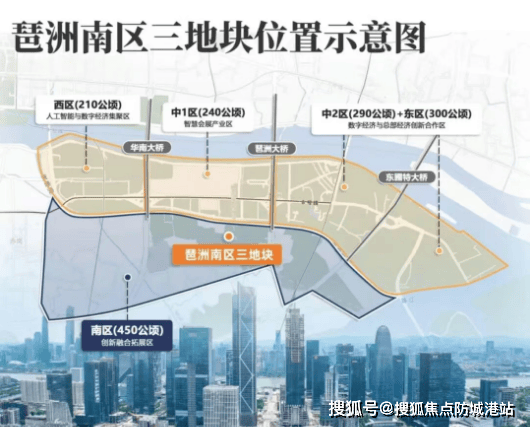 项目所在的琶洲南区,是琶洲进阶扩容的重要平台,官方定位为“创新融合拓展区”,聚焦数字创新产业发展及高品质配套,产居比有严格控制,以2.5:1,主导商务办公、居住、配套功能。随着琶洲西区开发趋于饱和,会展区基本开发完毕,东区又面临较大的土地权属问题,南区自然而然成为了利好外溢和承接的首站,促进琶洲经开区内外产业、居住功能互补,未来发展潜力巨大。