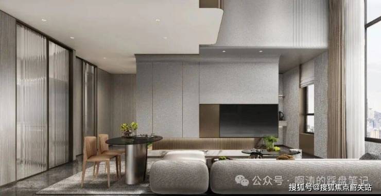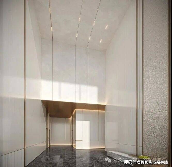 ✅广州首个公寓公区与住宅同品质(一般公寓公区成本为住宅三分之一),大面积采用岩板及奢华金属点缀,嵌入式金属踢脚,提升空间奢华感,打造归家仪式感