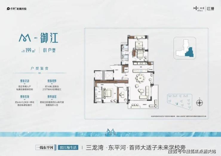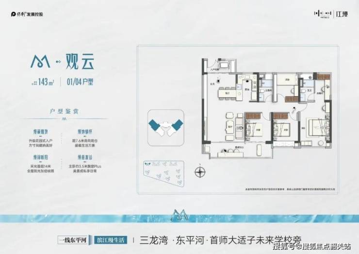保利阅江台提供的户型种类丰富,满足了不同家庭结构的需求。主力产品涵盖98-131㎡带装修三四房及172-273㎡头排江景大平层。其中,97㎡三房户型配备独立玄关和U型厨房,空间利用率高;131㎡户型采用南北对流双阳台设计,四开间朝南,特别适合二胎家庭或三代同堂居住;而172㎡大平层则为两梯两户设计,南向望江,双套房配置,客厅面积近31㎡,可灵活改造,充分满足高端改善需求。这些精心设计的户型,无论是实用性还是舒适度都达到了很高的标准,为购房者提供了多种选择。