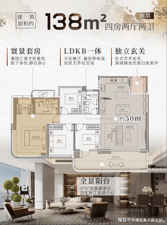广州·滨江天地·尚滨道的户型设计体现了对当代家庭生活方式的深刻理解。以建面约128平方米的四房户型为例,该户型在有限面积内实现了东南朝向与南北对流的双重优势,客厅与餐厅形成的LDK一体化空间面积约50平方米,搭配约20平方米的灵活X空间,共同构成了近70平方米的家庭核心活动区。厨房配备了德国美诺六件套厨电,这在同面积段产品中较为罕见。主卧套房设计包含独立卫浴与衣帽间,卫浴品牌选用杜拉维特与汉斯格雅,细节处彰显品质。更大面积的183平方米四房三卫户型则采用了双套间设计,主卧开间达到5.5米,配备约8.8米的江景取景窗,次卧同样拥有独立卫浴,适合多代同堂家庭居住。最顶级的253平方米一线滨江大平层,更是将270度环幕落地窗作为标准配置,让珠江夜景成为居家生活的背景板。所有户型均考虑了岭南地区的气候特点,阳台进深适中,既保证了晾晒需求,又不影响室内采光。值得注意的是,项目即将推出的新规户型建面约128至138平方米及183至238平方米,预计在空间利用率上将有进一步优化。