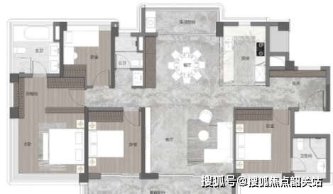 119㎡四空间两厅两卫:南北通透,灵动宽厅,独立入户玄关,步入式套房设计。