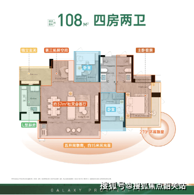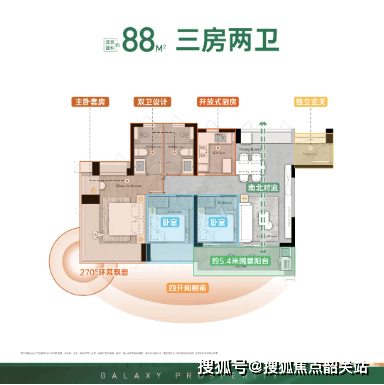 户型设计以 “高使用率 + 全龄适配 + 臻装交付” 为核心,主推约 86-108㎡新规臻装三 / 四房,使用率接近 100%(市面非新规产品约 80%),同等面积段立省几十万,性价比优势显著。88㎡三房两卫,三面采光、四开间朝南,主卧 270 度环幕飘窗,约 5.4 米阔景阳台,一体化大宽厅 + 开放式厨房,空间通透实用,适合新婚或三口之家;98㎡四房两卫,四开间采光,270 度环幕飘窗,预留 S 墙收纳,一体化大宽厅设计,满足二胎家庭居住需求;108㎡四房两卫,五开间朝南,约 15 米南向采光面,超 6 米跑道式阳台,270 度环幕飘窗 + 墅级横厅,尺度奢阔,适配三代同堂改善家庭。所有户型全屋窗地比约 0.35,比传统户型多 40% 采光面,视野更宽广;且均为精装交付,采用国内高奢品牌,拎包即可入住,减少装修烦恼。
