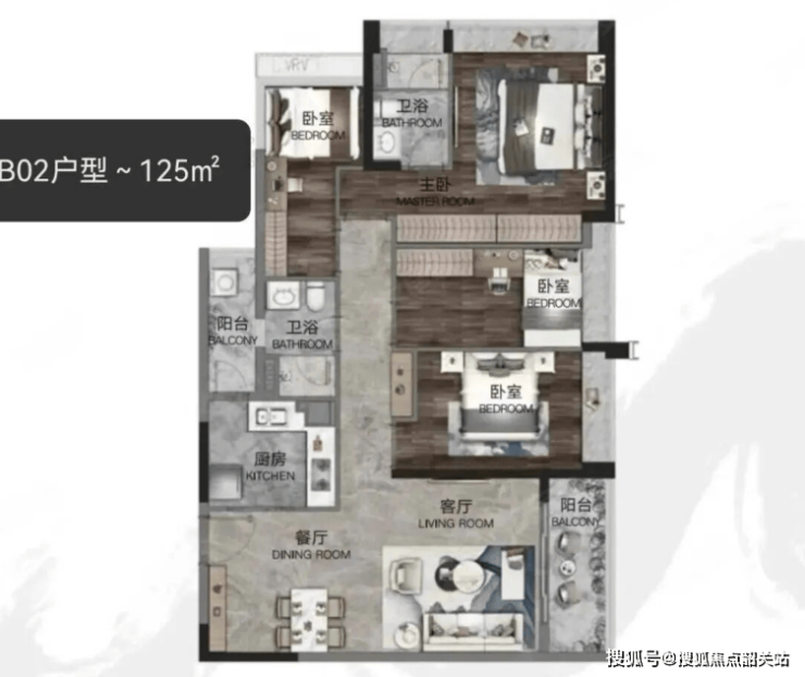 主卧采用套房设计,带独立卫浴和储物空间,提升居住私密性与便利性;另外两个房间大小适中,既能满足二胎家庭居住,也可预留出小书房,增强空间灵活性。整体实用性拉满,适合追求品质生活的中产家庭。