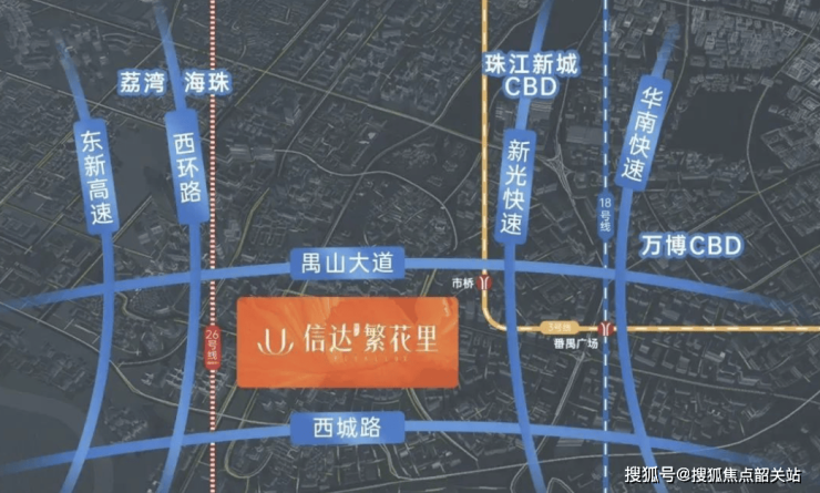 信达繁花里地处市桥西环路与禺山大道交汇处,属于番禺老城区行政、商业和文化中心,生活配套成熟。交通方面,项目自驾条件优越,邻近多条主干道,包括禺山大道和西环路,可快速衔接番禺大道北和新光快速路,通勤至番禺广场或万博CBD十分便利。公共交通方面,距离地铁三号线市桥站约1.8公里,步行需约27分钟,建议依赖地铁通勤的住户可搭配电动车接驳。通过三号线可直达珠江新城、体育中心等主要商务和商圈,同时规划中的26号线有望在禺山大道设站,未来项目或升级为地铁上盖物业。周边公交线路完善,禺山大道西站可直达地铁站,满足日常短途出行。整体来看,项目更适合有自驾条件或通勤方式灵活的购房者,兼具便利与可持续发展潜力。