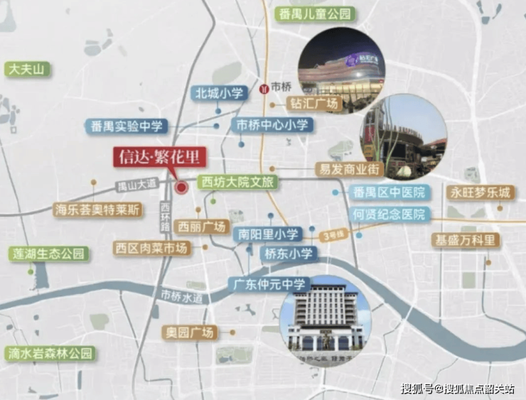 项目周边生活配套成熟且多样化。教育方面,信达繁花里已纳入南阳里小学招生范围,该校为省一级公办学校,教育资源优质可靠,中学阶段周边亦有广东仲元中学、番禺实验中学等优质学校,形成全龄段教育保障。商业方面,社区自带约4000平方米商业空间,周边包括西丽广场、钻会广场和易发商业街等商圈,日常购物和餐饮需求可满足,同时3公里内可覆盖番禺广场、万博CBD等大型商圈。医疗资源丰富,4公里内拥有三所甲级医院,为家庭健康提供保障。生态方面,社区内部配建滨水公园及繁花逸园,周边有市桥水道、大夫山森林公园、莲湖生态公园等绿地,日常休闲与运动环境优越。社区文化气息浓厚,保留百年榕树与岭南元素打造休闲广场,同时周边历史文化街区项目规划中,为业主提供丰富的文化生活体验。