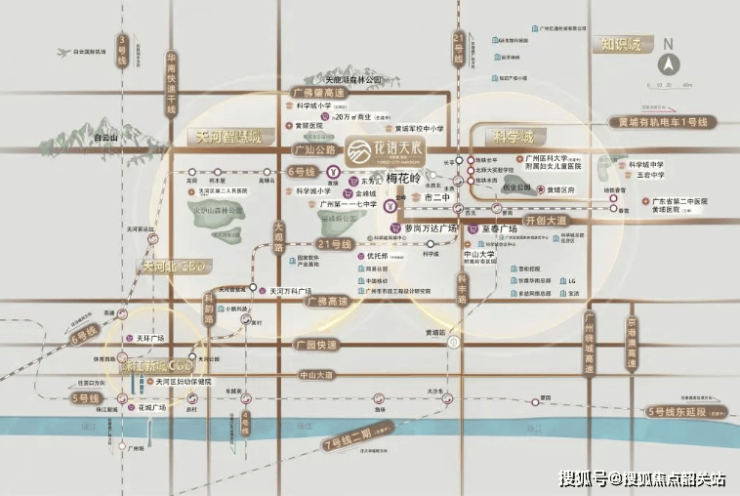1. **占据城市黄金位置**:中铁建·花语天宸地处广州第三发展中轴线“科技创新轴”的关键节点,恰好位于天河智慧城与黄埔科学城双城交汇的黄陂板块。这条科技创新中轴意义非凡,以琶洲为核心向北延伸至中新广州知识城南抵广州大学城,汇聚了金融总部、人工智能、数字经济、智能制造等核心产业,未来产业布局成熟后承载的GDP有望突破1万亿元,成为推动广州经济发展的重要力量。周边两大板块产业实力雄厚,天河智慧城作为广州时隔32年成立的第二个高新区,以4倍珠江新城的投资力度打造,定位“广州硅谷”,目前已吸引网易总部、酷狗等2500家企业进驻,计划2025年建成全市创新型企业孵化培育高地;广州科学城则是广深科技创新走廊的重要“创新极”,万亿级产业集群效应显著,战略性新兴产业产值占全市50%以上,规模以上高技术产业产值占全市72.6%,科技创新能力稳居全国经开区第一。同时,项目与天河存在明显价差,能有效承接天河外溢的居住需求,且黄陂板块主打居住功能,周边市政配套逐步完善,日常办事可依托板块内成熟的政务服务资源,购物可对接规划及现有商圈,就医有多家三甲医院保障,整体资源集中度高,为居民提供高效便捷的生活体验。