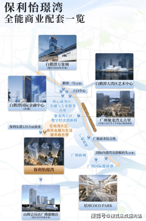 项目自身规划了约40万平方米的滨水商业街区,并且周边已有多个成熟的商业中心如芳和荟购物广场、荔胜广百等。同时,项目对面是成熟的芳和花园与芳村花园,楼下就有煲仔饭、肠粉、烧腊店等快餐店以及小型菜场,基本生活需求可以得到充分满足。医疗方面,距离广医附属第一医院花地湾院区仅约700米,优质的医疗服务近在咫尺。