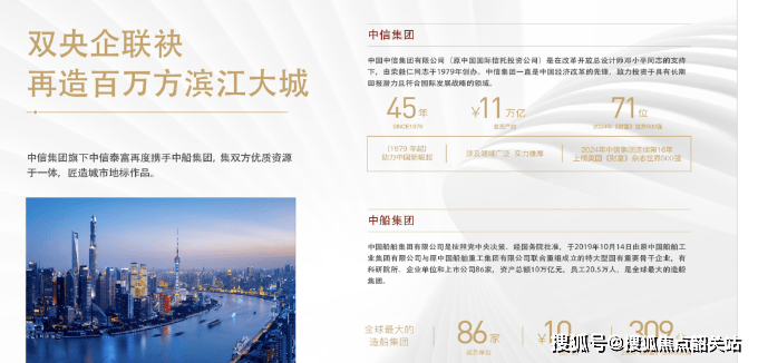 3. 双央企的加持,为广州滨江天地的品质与兑现提供了强有力的保障。中信泰富地产是中信集团的全资子公司,而中信集团作为世界500强企业位居71位,总资产高达11万亿元,其旗下的中信泰富业务涵盖房地产等多个领域,实力雄厚。中船集团则是全球最大的造船集团,拥有86家成员单位,资产总额达10066亿元,位列世界500强第309位。两大央企在2020年10月就联手以81.96亿拿下项目地块,之后又以187.6亿拿下广船二三四期地块,充分彰显了对这片区域发展的信心。这种强大的企业背景,让购房者在选择时多了一份安心,也为项目的长期发展注入了稳定的动力。