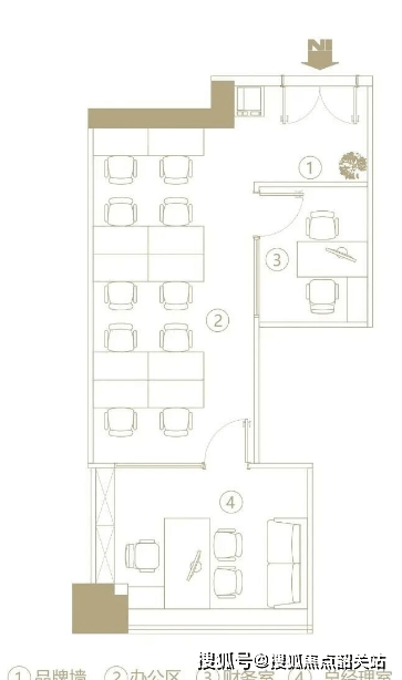 这套房源参考面积 112㎡,户型朝向为北向,整体空间方正通透,没有多余的拐角浪费。最亮眼的就是2 隔断 + 10 工位的功能布局:两个独立隔断间,刚好可以作为老板室和会议室,私密性拉满,无论是日常商务洽谈还是内部核心会议,都能保证不受外界干扰;开放区域可容纳 10 个标准工位,工位间距宽松,员工办公不会觉得拥挤压抑,团队协作也更顺畅。