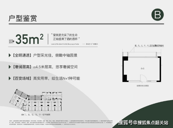 飞鸟集公寓主力户型涵盖 35 - 46 - 48 - 61㎡,均为 4.5 米层高的复式结构。35㎡户型设计灵活,满足不同需求;46㎡户型注重居住的舒适性与景观资源的利用;48㎡和 61㎡顶层特殊户型,带露台且直面中央公园景观,极具特色。这些户型在空间布局上充分考虑了居住与投资的双重需求,为购房者提供了多样化选择。