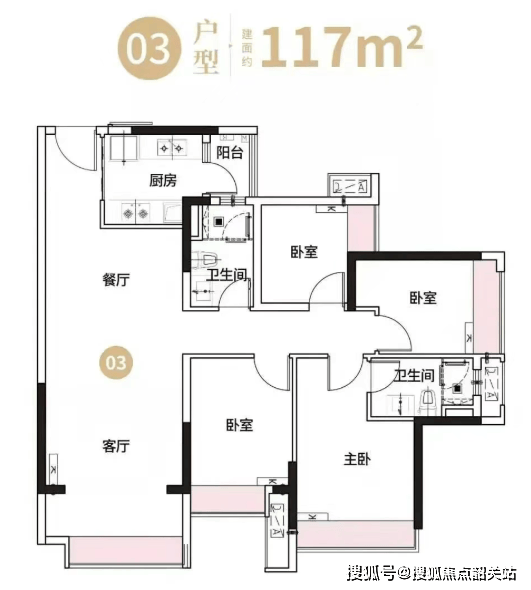 113㎡四室两卫:这是一款专为改善型客户打造的横厅四房户型。南北对流,带有6米超大阳台,空间感宽绰大气。三开间朝南的设计,让阳光洒满每一个角落。入户玄关同样规避了门对门的情况,动线合理。主卧设有步入式衣帽间,满足了女主人对收纳和时尚的追求,270°转角飘窗设计,更是将景观与舒适完美融合。