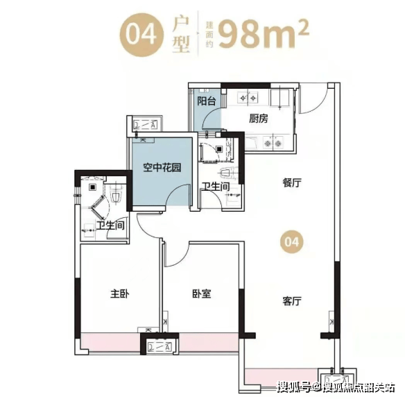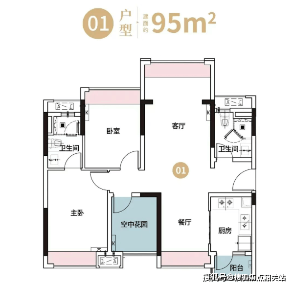 96㎡三室两卫:作为89㎡的进阶版,这款户型采用了竖厅南向三房设计,三开间朝南,保证了充足的日照。5.8米的大观景阳台连接客厅和次卧,视野开阔,采光通透。主卧特别设计了270°转角飘窗,不仅增加了室内使用面积,更提供了绝佳的观景视角,让居住者在家中就能享受到公园美景。