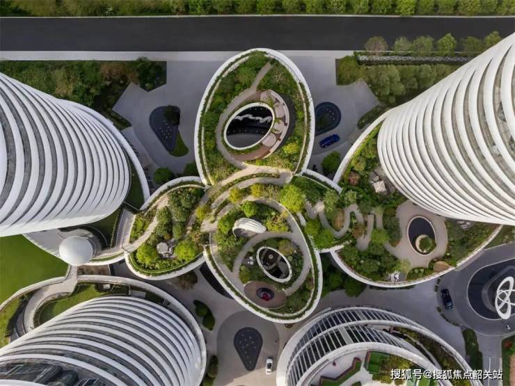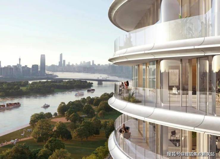 建筑采用椭圆形造型,巧妙呼应河流的蜿蜒流向。每栋建筑依循地势,靠近水面处逐渐降低高度,优化视野,使住户能够尽情欣赏珠江及周边景致。最高塔楼顶部设置多层配套空间,涵盖餐饮、健身、无边际泳池、水疗中心及酒店大堂等,满足业主高端生活需求。每层楼配备阳台,将河畔美景尽收眼底。塔楼布局与朝向经过精心规划,最大化利用周边自然景观视野,同时保障住户隐私。其曲线轮廓不仅造型优美,还能改善风在塔楼周围的流动,减少湍流,提升室内气流循环。此外,通过配置横向遮阳挑檐、半气候控制空间、高性能机电系统及外立面设计,有效减少单位能耗,实现节能环保与舒适生活的统一。