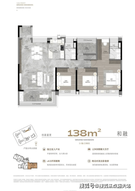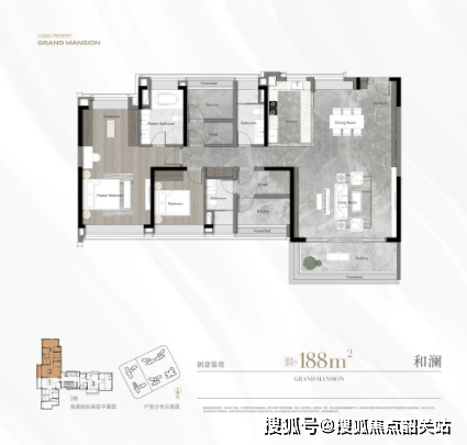 江湾·和樾提供了多种户型选择,从107㎡到188㎡不等,每一种户型都强调南向瞰江与低密舒适的特点。其中,188㎡四房户型尤为突出,设计有270°环幕江景,主卧套房配备双台盆卫浴,LDKB聚厅面积超50㎡,为业主提供极致的生活体验。