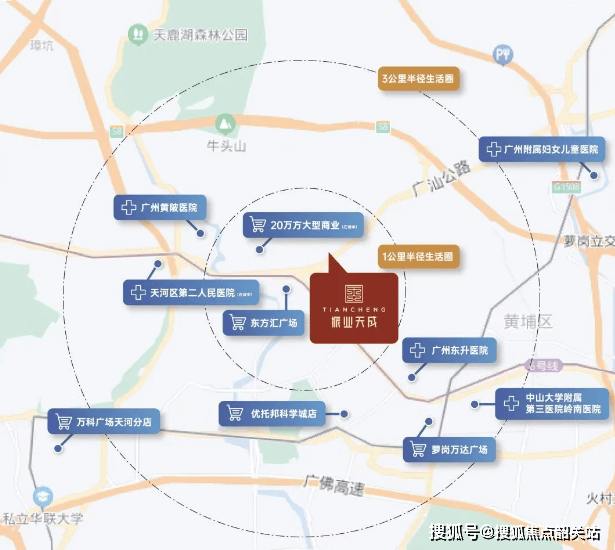小区自带约4000㎡社区商业,目前已引入便利店、生鲜店和社区食堂。1.5公里范围内,翔龙广场(在建约20万㎡)未来将补充大型超市和影院。现有商圈如萝岗万达、万科广场开车10分钟内可达。医疗方面,中山三院岭南医院(三甲)距项目约3公里,广东省第二中医院黄埔院区也在5公里圈内。但真正让人愿意住下来的,或许是那片“绿色包围圈”——天鹿湖森林公园(约880公顷)、黄陂生态湿地公园、火炉山等六大公园环绕,早晚开窗就是负氧离子,周末遛娃或跑步的选择很多。