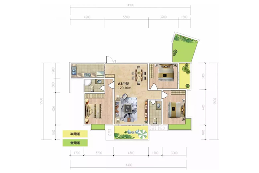 建面129.3m²