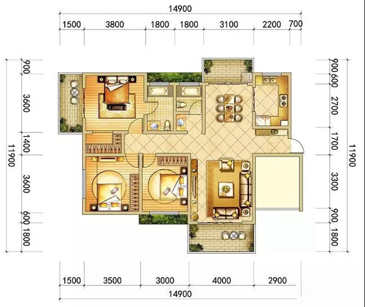 3室2厅2卫-129㎡ 3+1阔景舒居