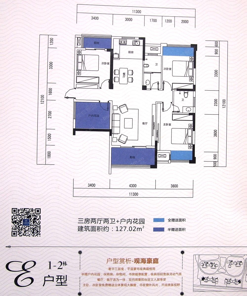 3室2厅2卫-E1-2栋户型图127.02㎡