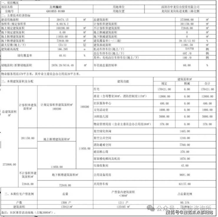 总规划1508户,全部都是商品房,其中1栋2单元3梯5户,其它栋数都是3梯6户设计,地下室有3层,规划停车位1777个,车位占比约1:1.18。