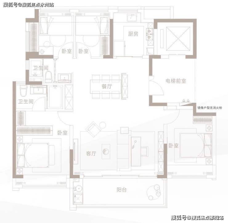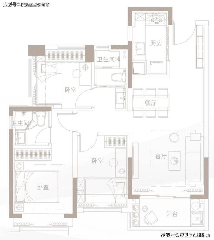 面积:79-85㎡3房1卫,91-95㎡3房 2卫,125㎡4房2卫