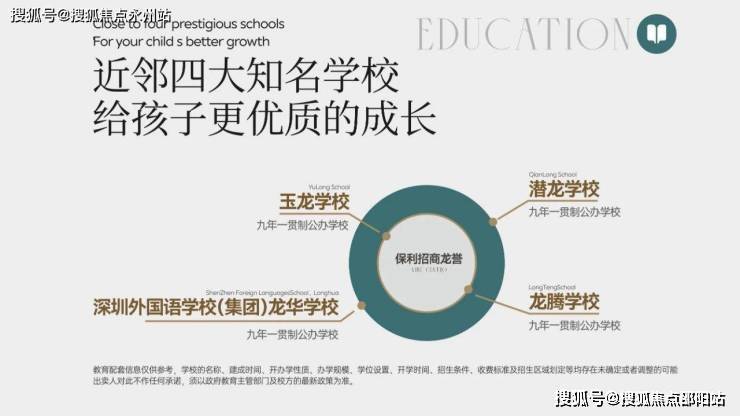 在教育配套方面,保利招商龙誉周边有多所知名学校,家门口深圳外国语学校(集团)龙华学校,2021年首届中考,总均分龙华榜首,570分以上占比9.2%,500分以上占比70%。项目周边还包括龙腾学校和玉龙学校等。这些学校提供了从幼儿园到中学的全程教育服务,满足了不同年龄段孩子的教育需求,给孩子更优质的成长。特别值得一提的是,项目内规划了一所9班制的幼儿园,为有学龄前儿童的家庭提供了极大的便利。保利招商龙誉售楼处电话:400-856-2867