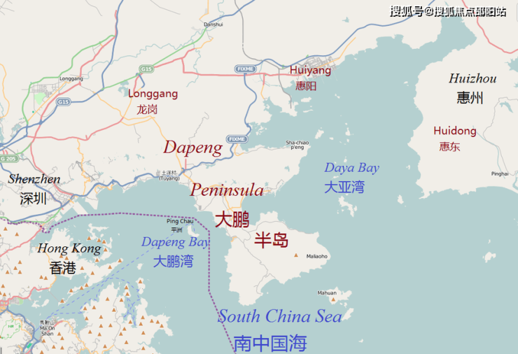 大鹏半岛位于深圳东南部,由大鹏、葵涌、南澳三个地方组成。与惠州接壤,遥望香港新界。大鹏半岛的海岸线长128公里,占据深圳市的二分之一。