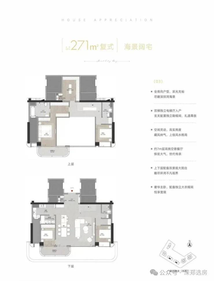 【层高】都在3m以上,大户型层高达到3.3-3.5m