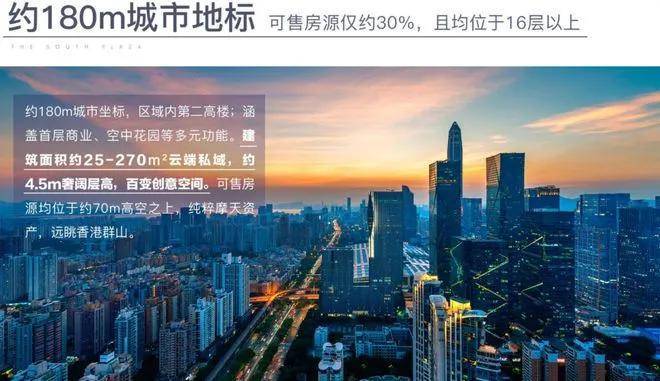 【会见世界的深圳之窗】约180m城市坐标,涵盖首层商业、空中花园等多元功能。建筑面积约25-270㎡云端私域,约4.5m奢阔层高,百变灵动空间。270°大面宽玻璃,直望京基100、荔枝公园,成就堪比纽约中央公园的观景视野。配置星级大堂,近12m挑高,威仪不彰自显。双银Low-E中空玻璃,采用内开启扇设计,同频当代国际建筑美学;6部日立电梯,高效商务体验。