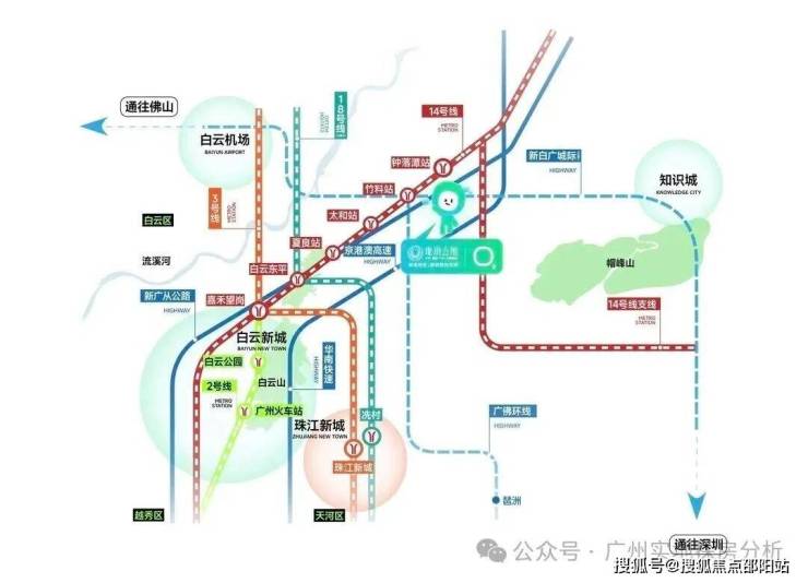 项目距离地铁14号线钟落潭站一期大概900米,二期距离地铁站大约500米。